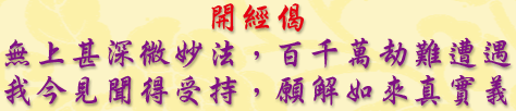 發願偈:諸佛正法眾中尊、直至菩提我皈依、我以所行施等善、為利眾生願成佛。
